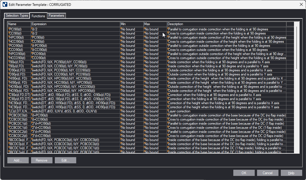 Notice that when the function is used in the expression of a parameter, the argument is the function that extracts the current material thickness of the project.