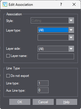 Aux Line type | Sets the auxiliary line type to be associated with the style. In the export CFF2 file, all objects with the selected style are assigned the set auxiliary line type. |
