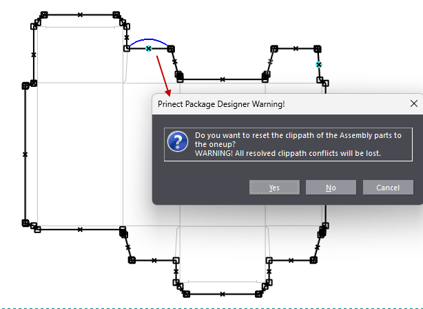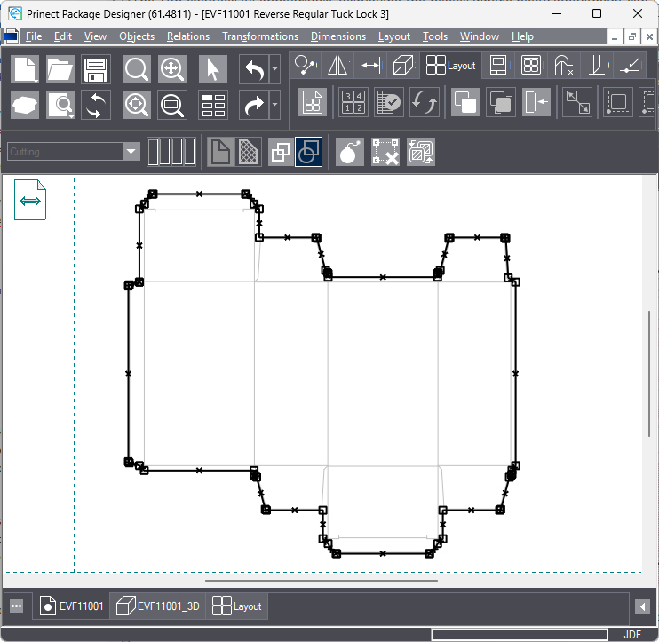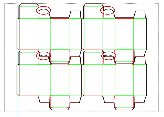 The 1up changes its appearance, displaying the places — where bleed adjustment can be done. Also a contextual edit bar appears above the graphical area with the icons for actions you can do to the bleed contour, among them exploding the contour and deleting it.