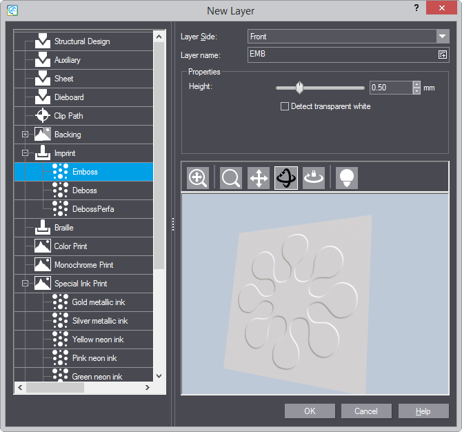 Before applying a printing or finishing effect to an object, you must create a process layer to carry the effect. After you have created the layer, you can proceed by assigning objects in the design to the process layer. An exception are the processes backing and lamination, which are applied onto the entire design and need no specific objects.