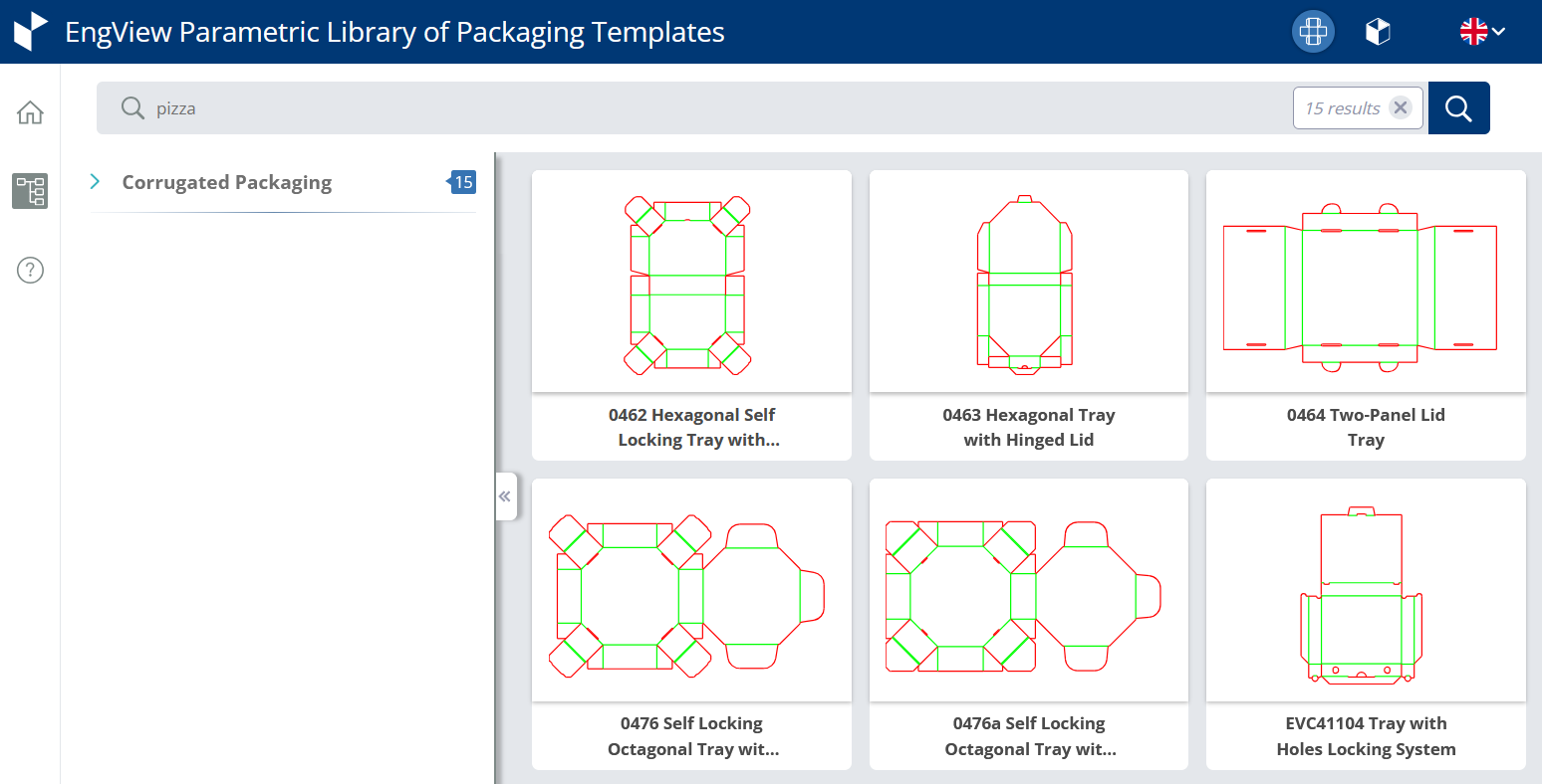 When searching for parametric templates in the Parametric Library of Packaging Templates, you can use keywords. Keywords are tags added to templates that share a property.
