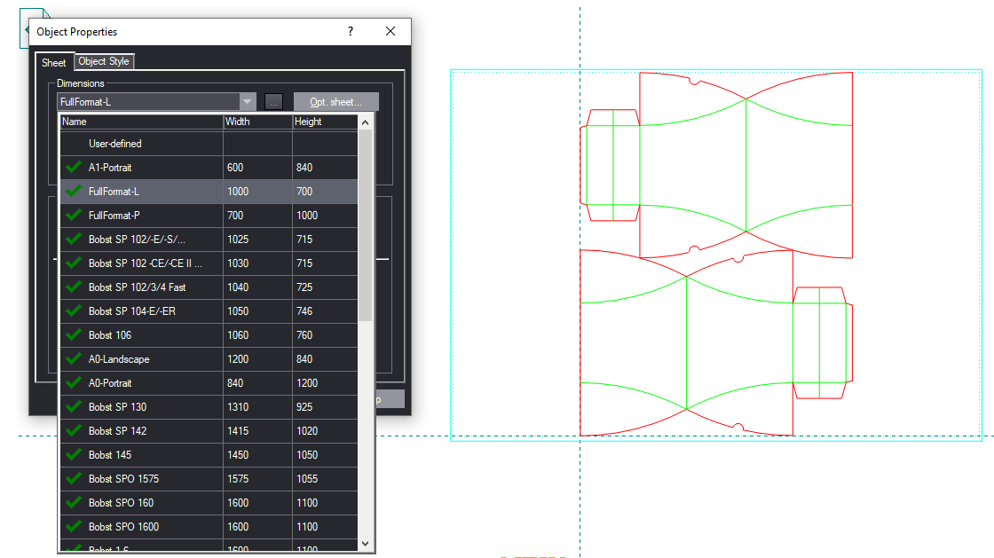 The sheets that are most suitable for the current layout are listed at the top of the list, indicated by a green check mark.