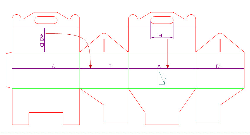 In four-panel boxes, the sizes of the middle panels — panels 2 and 3 — correspond to the main length and width of the box. That's why in the compound component the distances between the second and the third control points is linked to the parameter AX2, and the distance between the third and the fourth control points with the parameter AX3.